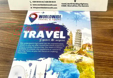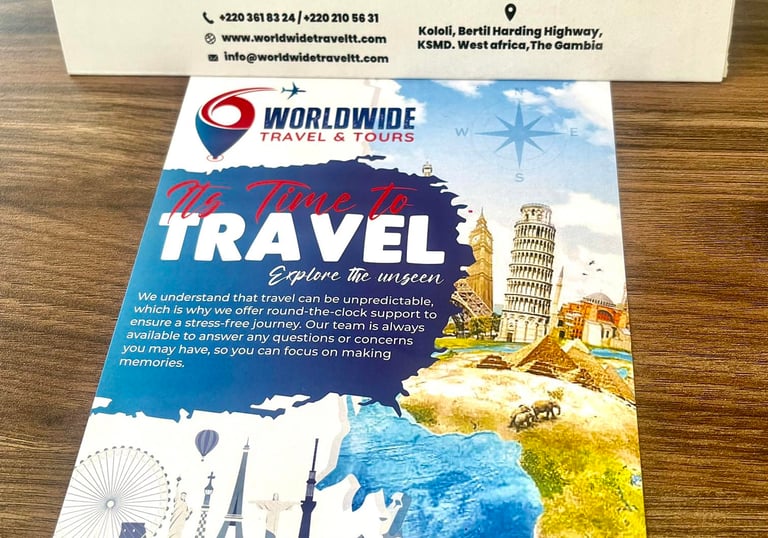 Looking for a much-needed escape? Let WWTT Travel Agency do the planning for you. Since 2023, we’ve been providing top-notch travel booking services and advice in The Gambia and Abroad. Our experienced agents excel at finding the most affordable fares and securing the best deals for you.